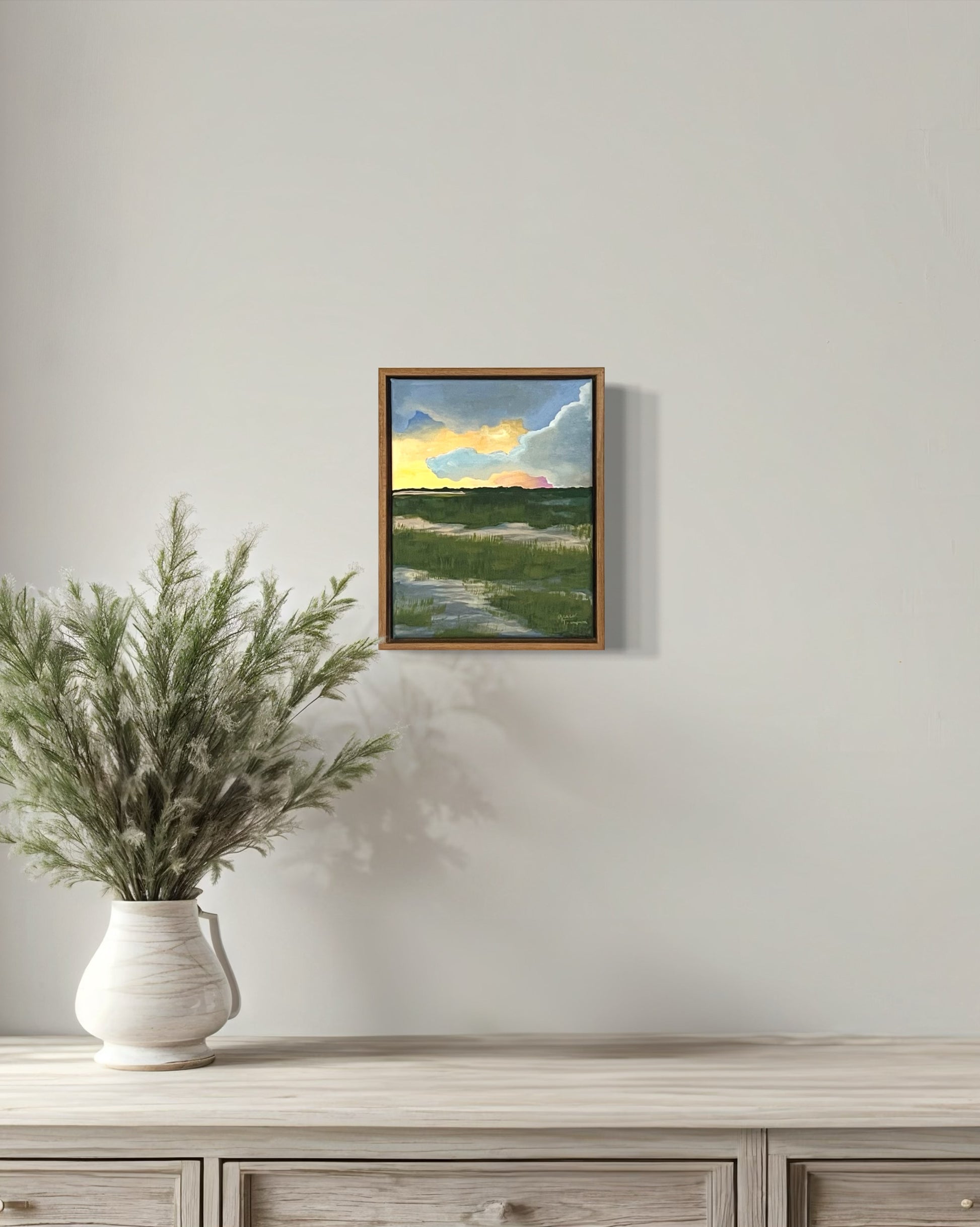 “Low Country Clouds” is an original acrylic painting on 8x10 inch stretched canvas. Painting is sealed with matte varnish for protection.