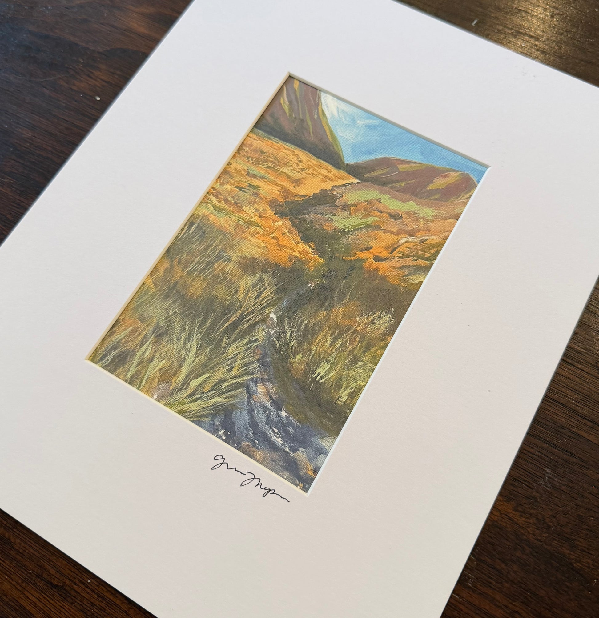 This print measures 4x6 inches and is mounted in an 8x10 inch beveled mat, ready to place in your favorite frame. Print signed on mat. Titled and dated on the back.